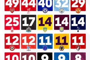 👀英超各队的最长连续不败场次一览